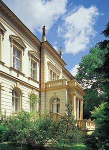 Neorenesanční budova byla postavena v roce 1876 a až do roku 1894 v ní bylo umístěno gymnázium. V letech 1894-96 byla přestavěna na rodinnou vilu, z té doby pocházejí neobarokní interiéry. Od roku 1946 v budově sídlí knihovna.
